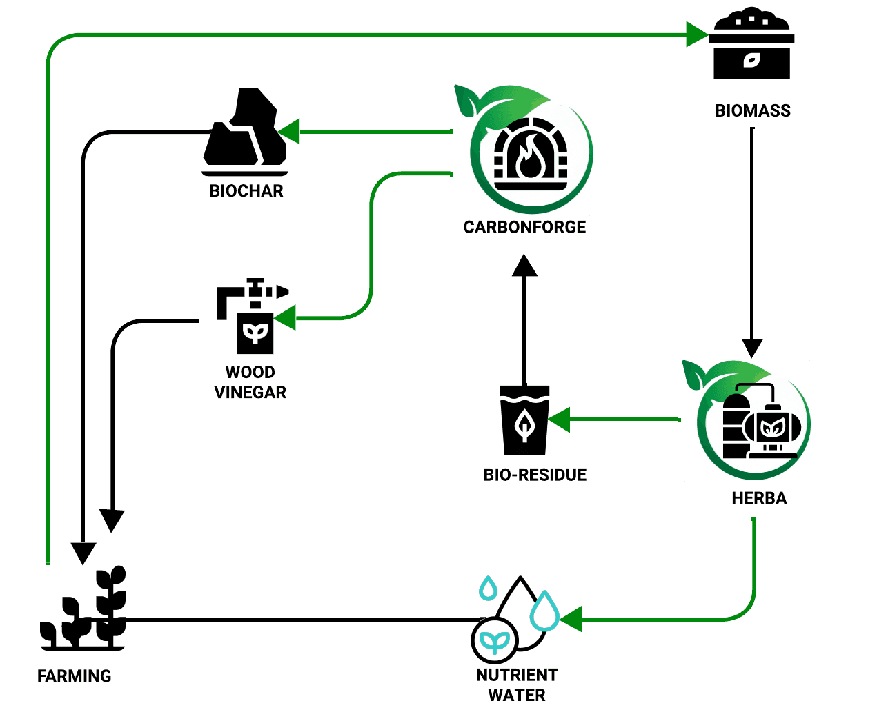 Our organic by-products are created through a closed-loop system. HerbaGas™ converts biomass into renewable gas and digestate. That digestate is then processed in CarbonForge™ to yield valuable carbon-based materials and natural growth enhancers.